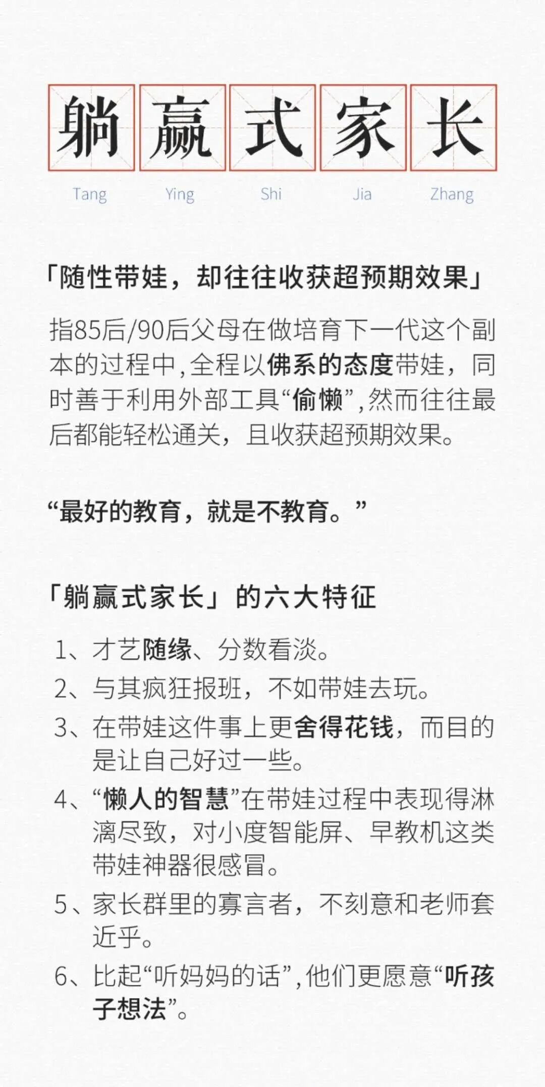 近期在網絡上,流行一個新詞,叫“躺贏式家長”。咱們時常說“躺著就能贏”,那樣“躺贏式家長”是不是亦這么理解呢?