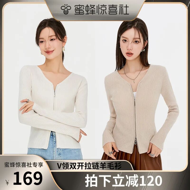 長按復制上面整段口令---打開?手機淘◇寳?就可-【蜜蜂驚喜社】99.9%羊毛V領寬松羊毛衫休閑百搭打底衫女