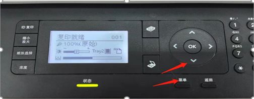 1.按下打印機操作面板“菜單”鍵,再按向下選取鍵。